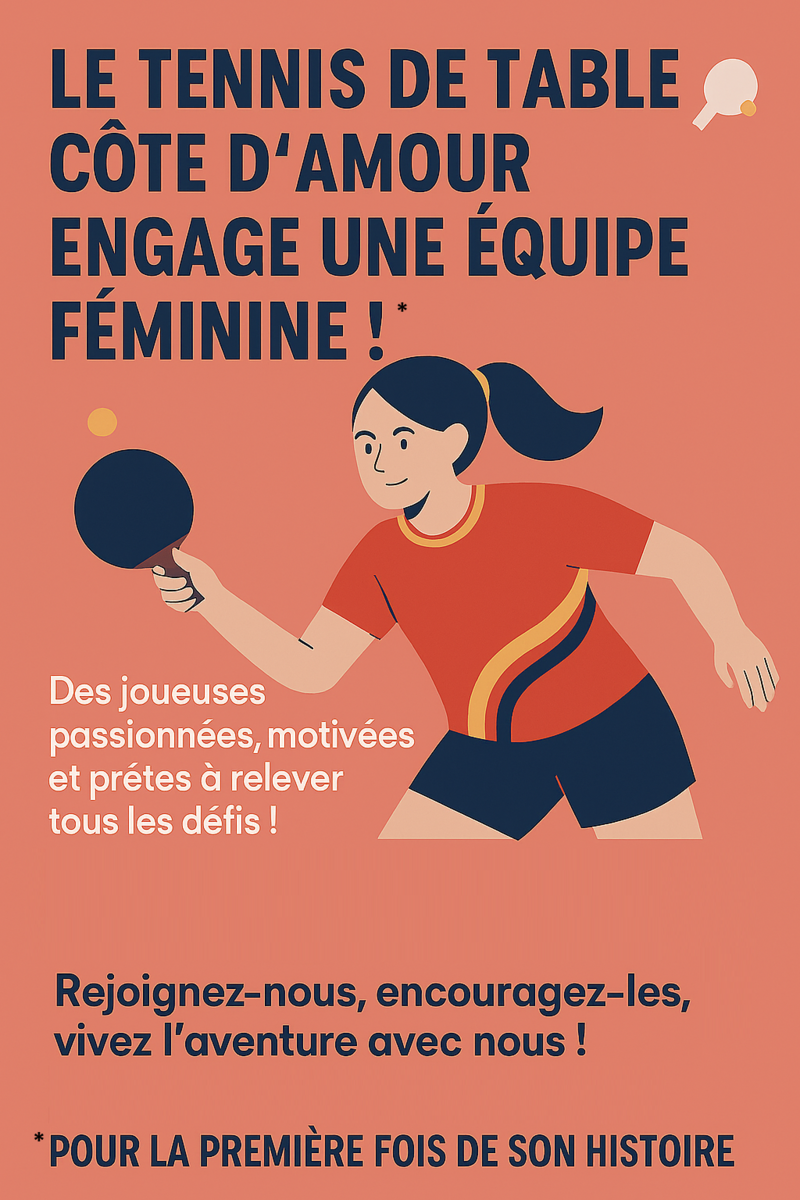 Le Tennis de Table Côte d’Amour écrit une nouvelle page de son histoire en inscrivant pour la toute première fois une équipe féminine en championnat ! 🎉